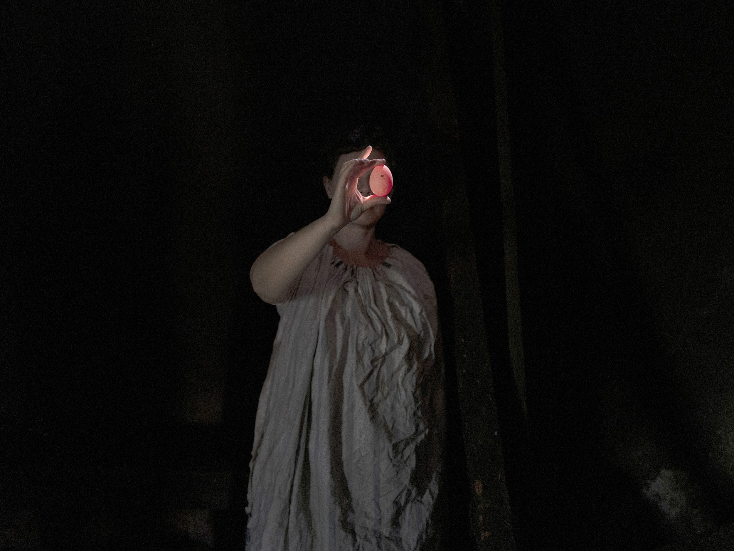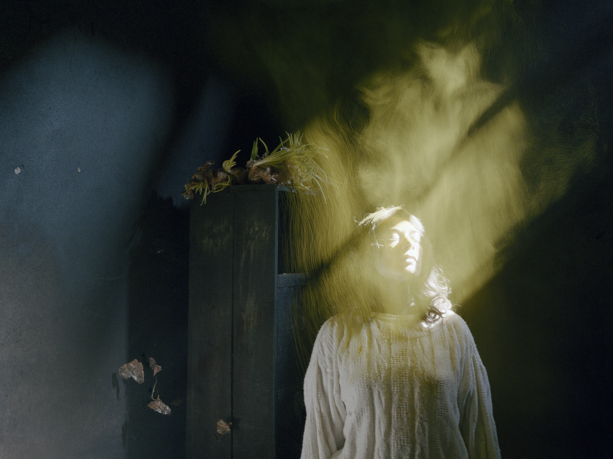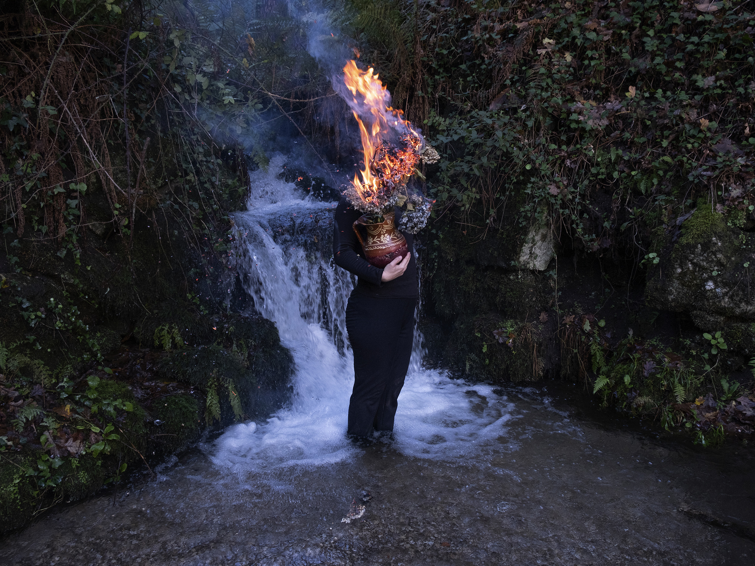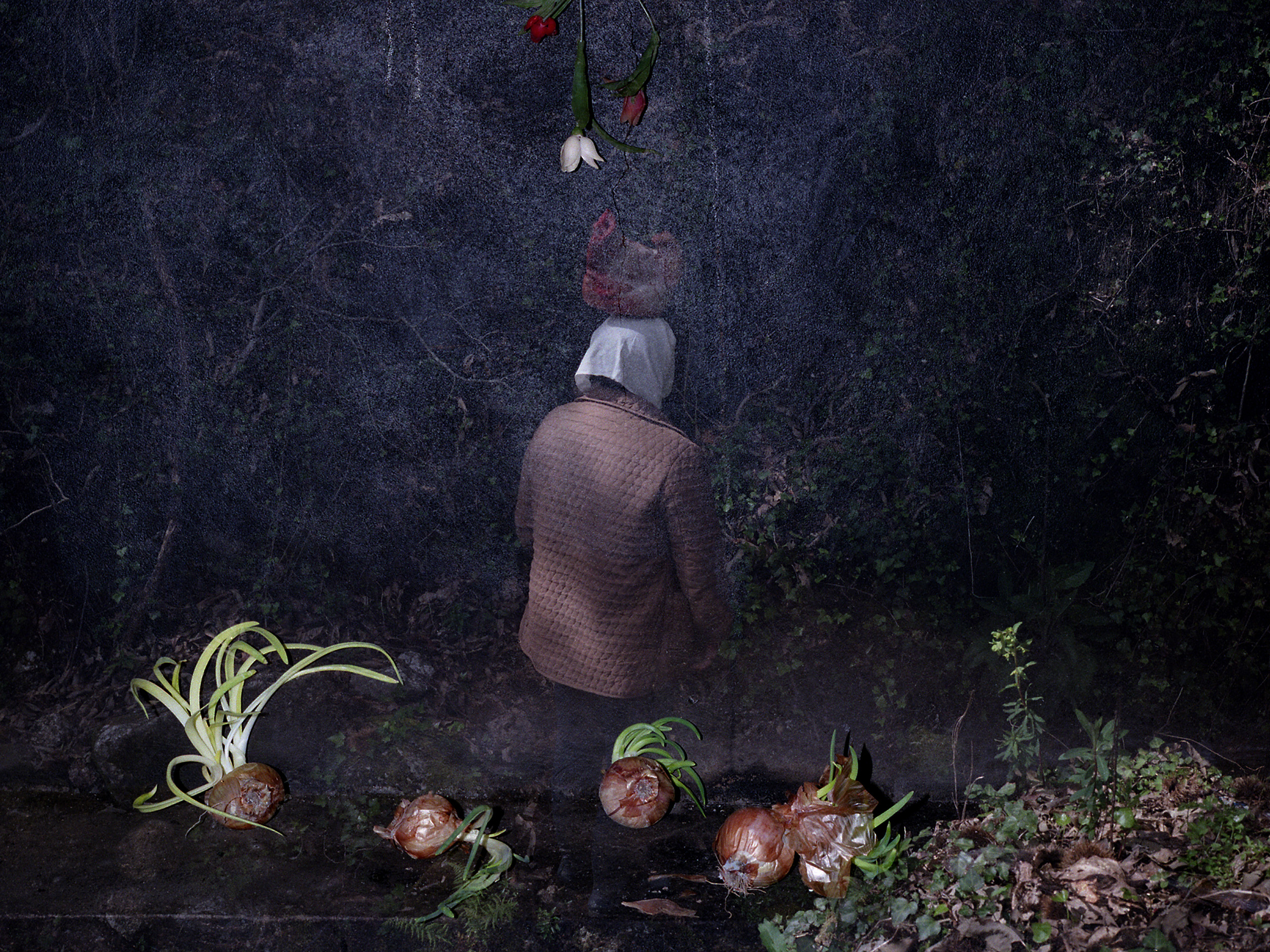 Bone Foam (2022-ongoing), by Maria Oliveira orchestrates a visceral dialogue between the human body and the ancestral landscapes of Northern Portugal. The series navigates the irresolvable friction between our impulse to master nature and the inevitable surrender to its transient ecology. Invoking a pagan, telluric dimension, the project positions the feminine as a primordial force—one that simultaneously generates and destroys, nurtures and consumes. This duality is articulated through the convergence of intimate familial portraiture and the artist’s tactile, almost sculptural interventions with natural forms. By treating human flesh and raw flora with the same ontological reverence, Oliveira transforms these encounters into a profound meditation on lineage and vulnerability. Grounded in the physical and spiritual gravity of her heritage, Bone Foam dismantles the illusion of human exceptionalism, revealing instead our inextricable bind to the cycles of a world where every body and object remains, poignantly, ajar in time.